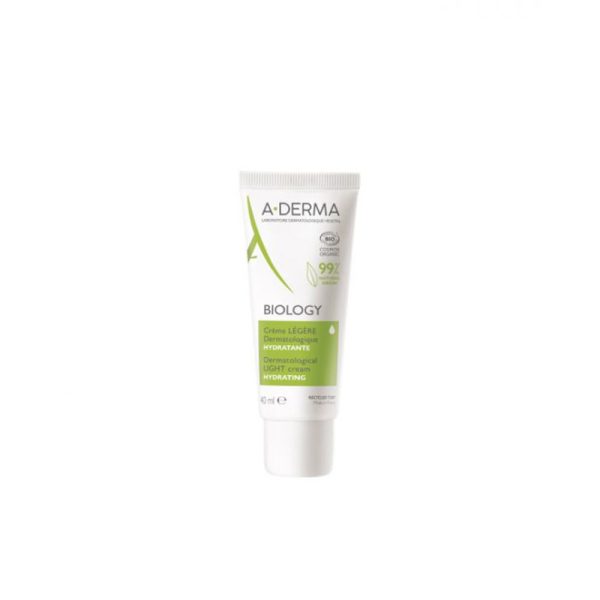 A-Derma Biology Creme Ligeiro Hidratante 40 ml, hidrata intensamente durante 24 horas, equilibra e reforça os tipos de pele frágil, normal e mista.