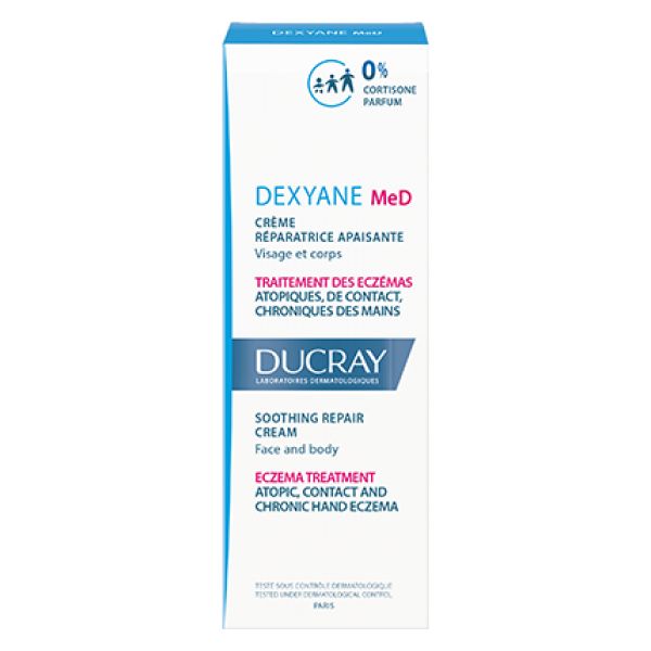Dexyane Med creme reparador calmante trata, repara e limita o reaparecimento das lesões de eczemas. A sua textura “efeito penso ultra hidratante” assegura a proteção da pele.