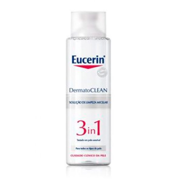 Água micelar de limpeza, indicada para a higiene diária de todos os tipos de pele. Eucerin DermatoCLEAN Solução Limpeza Micelar 3 em 1 limpa, contém uma combinação inovadora de ingredientes ativos, que limpam e hidratam a pele, deixando-a visivelmente macia e com elasticidade.