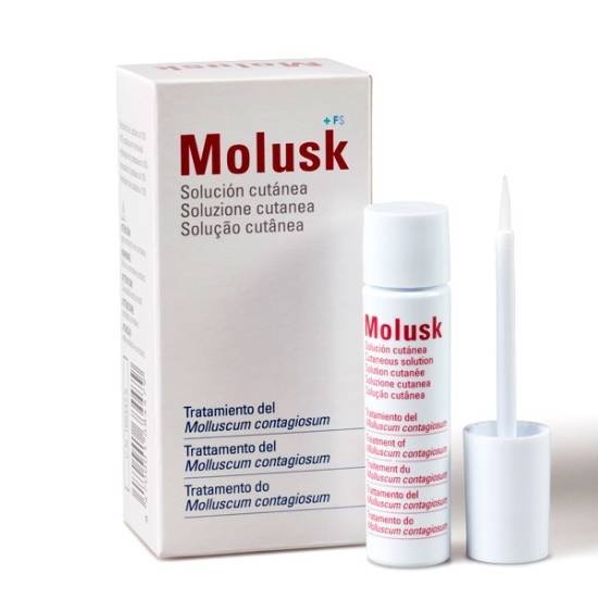Solução cutânea indicada para o tratamento do Molluscum contagiosum.